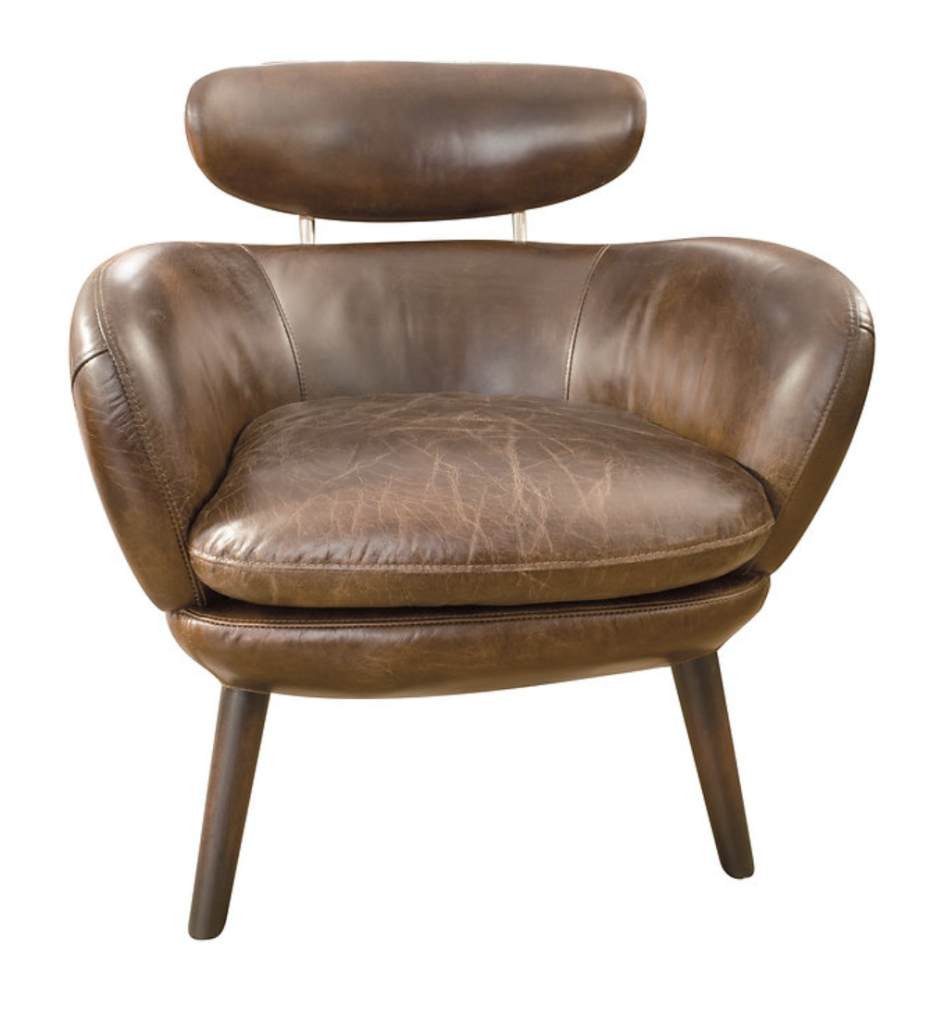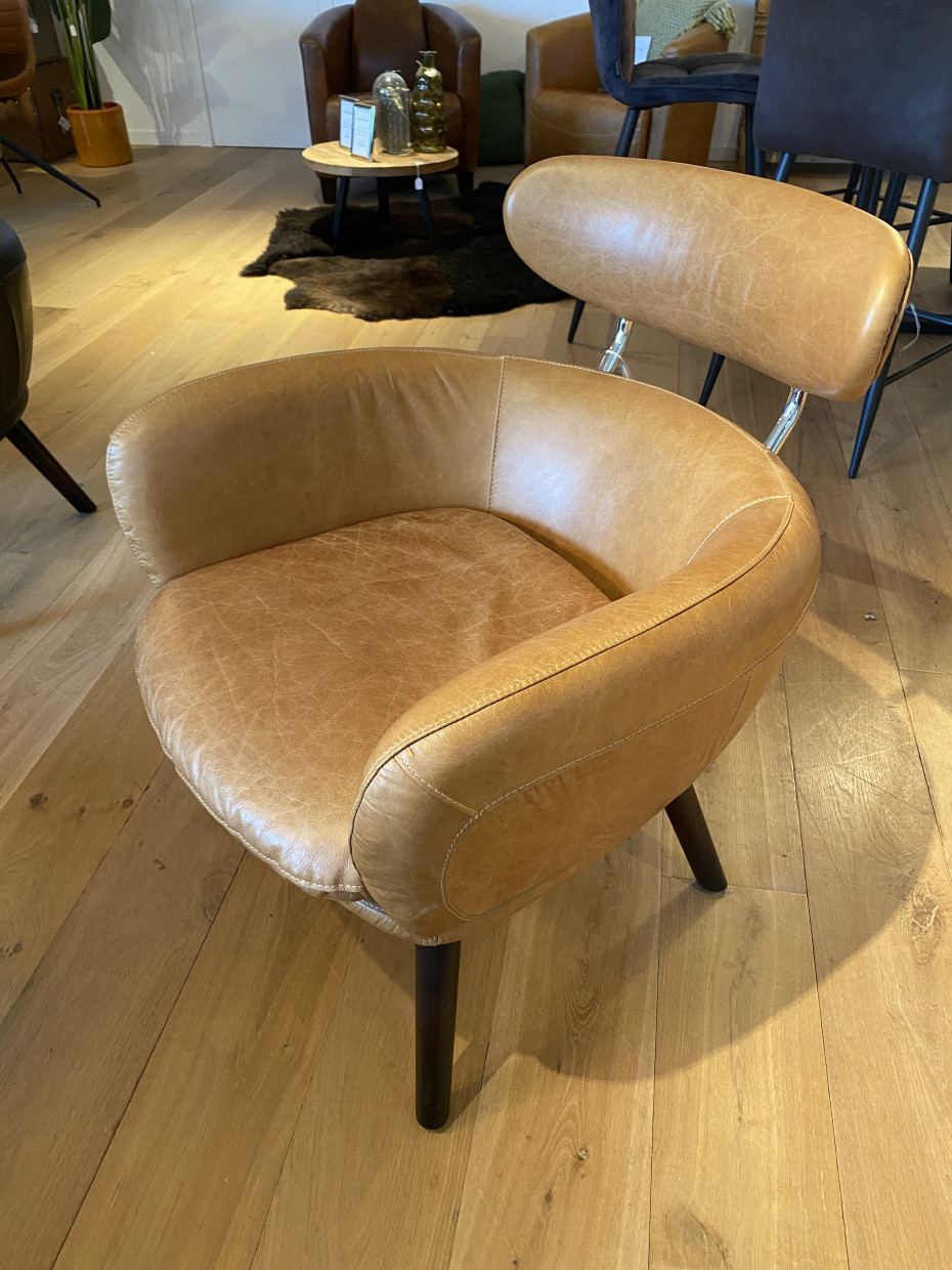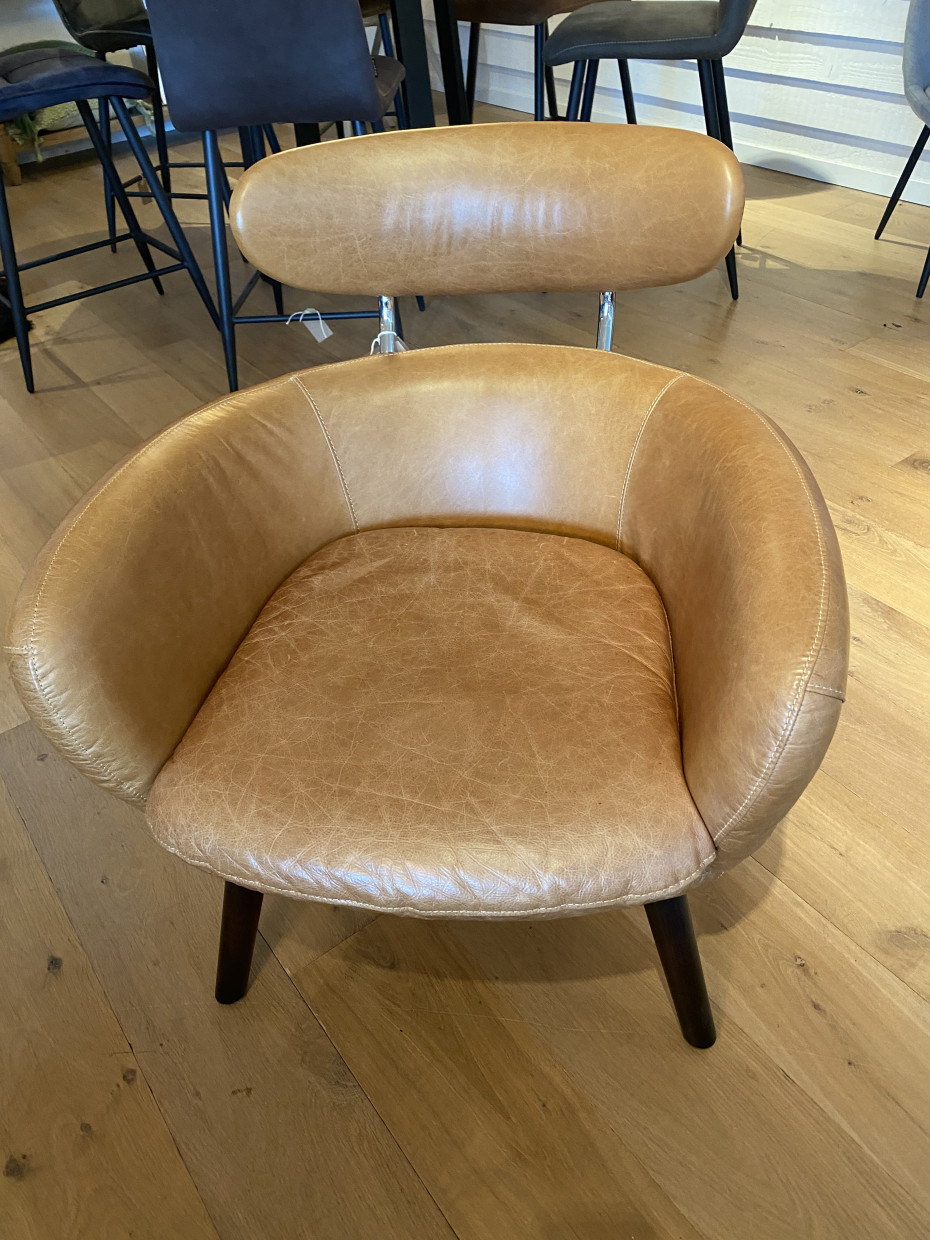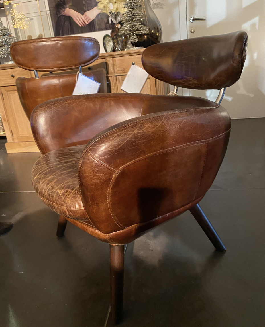 Deze retro vintage lederen clubzetel kan je ook bestellen in Vintage bureaustoel uitvoering.