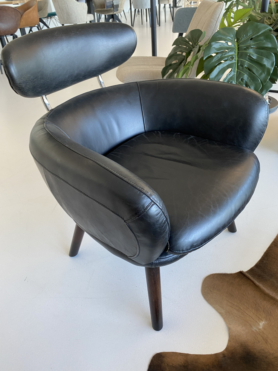 Retro clubzetel vintage Italiaans leder bruin of zwart biedt ruim en zacht zitcomfort. Deze vintage lederen clubzetel heeft een mooi rond gevormde zitting en leuning en heeft daarmee een extra steun aan rug en schouders.