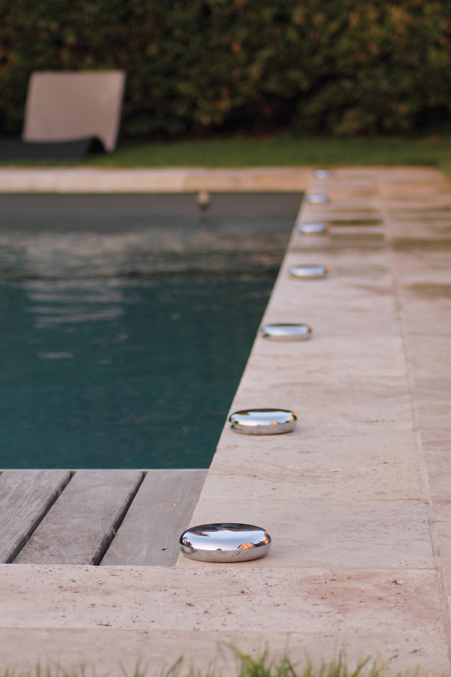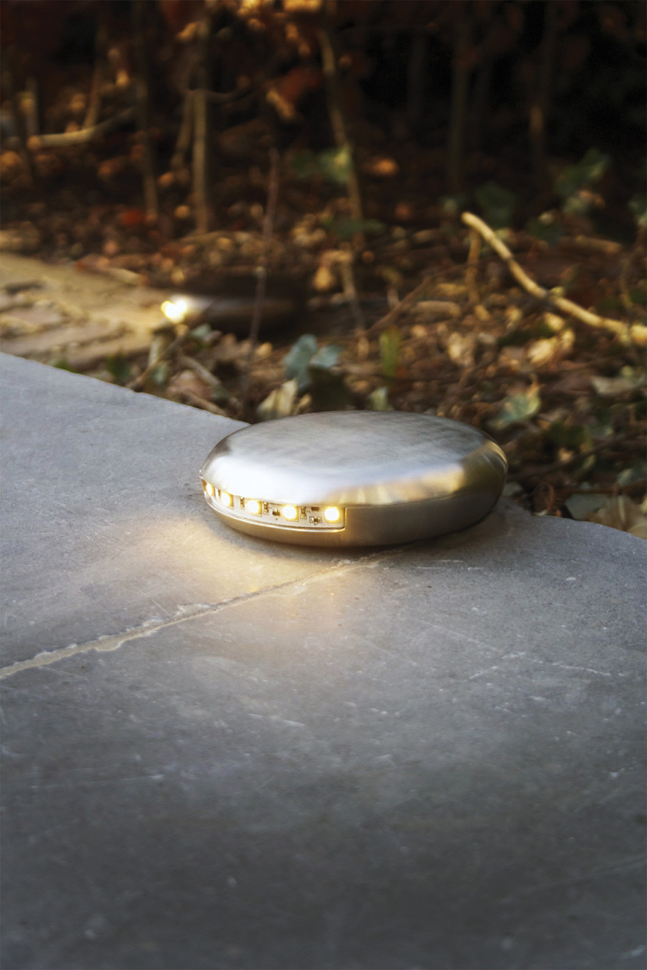 Deze ronde padverlichting Galed van Authentage doet zich voor als een blinkende rivierkei of mini-ufo en is hierdoor een gecamoufleerde verlichting met een natuurlijk uitzien voor uw oprit, tuinpad, traptrede of terras.