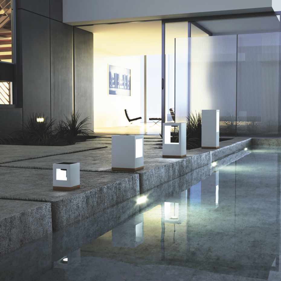 Trendy Venice tuinlantaarns met solar paneel, gemaakt van duurzaam aluminium en basis van teak hout.