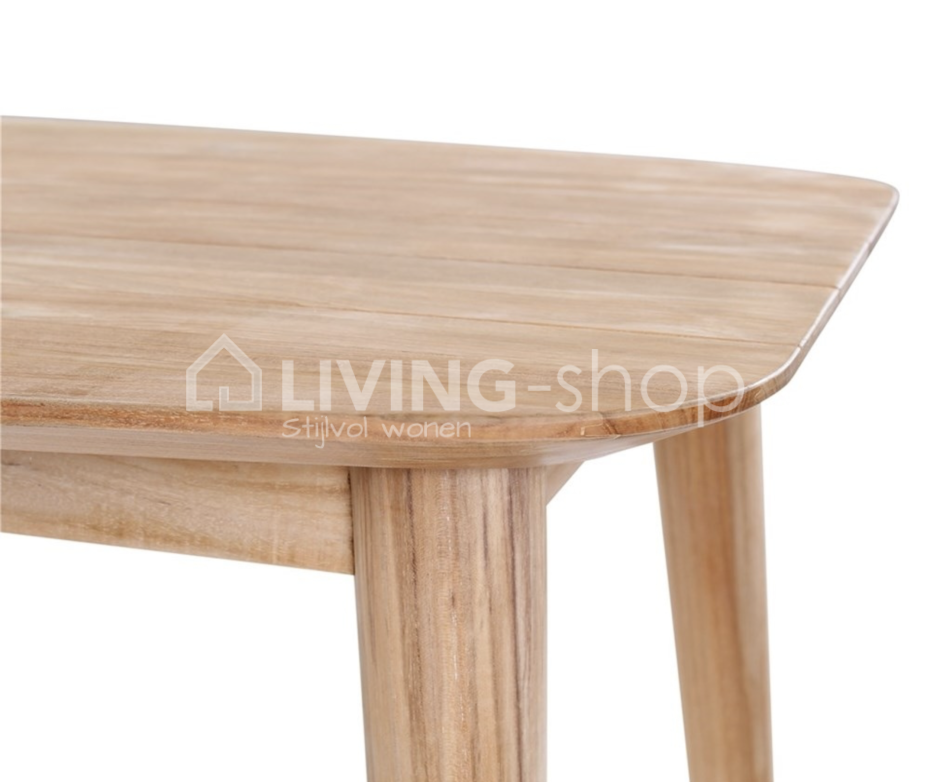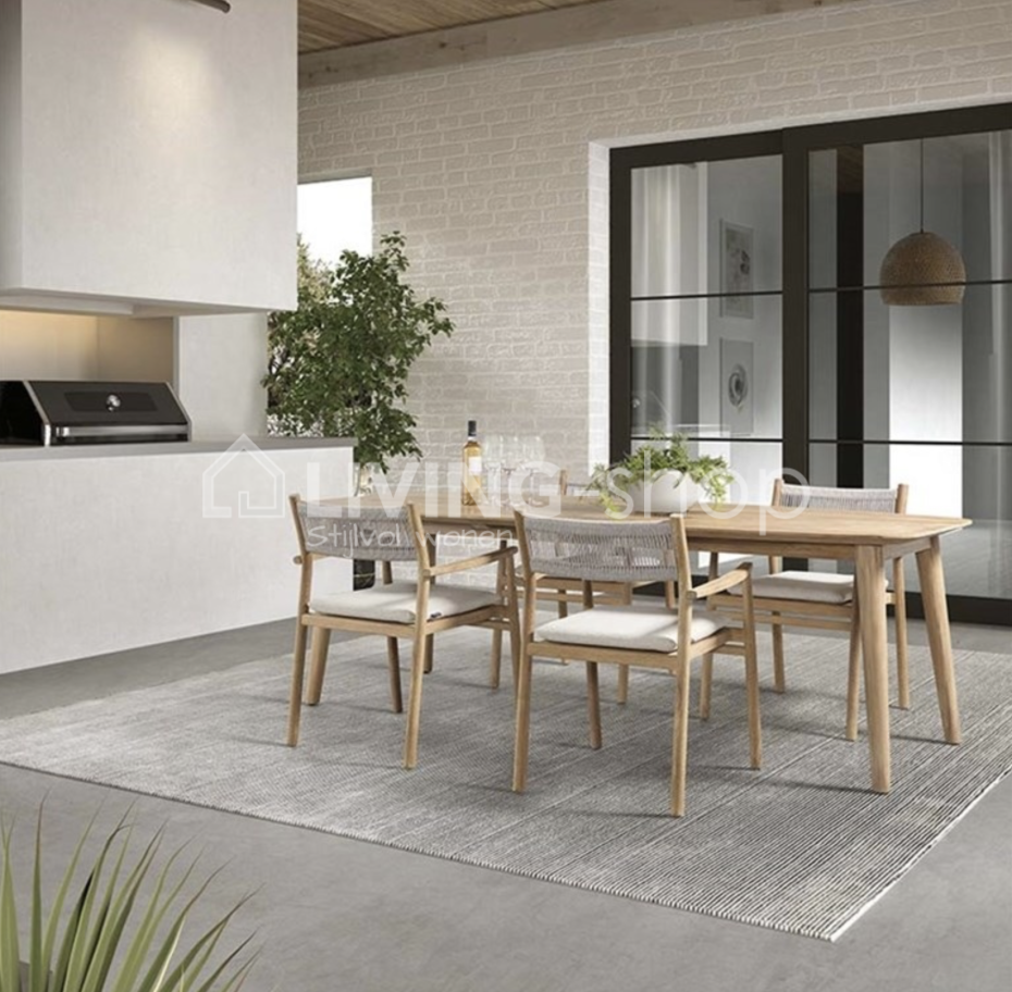De ANAIS tuintafel kan je zelf samenstellen naar wens met de bijpassende Anais Teak naturel tuinstoelen voorzien van een beige weving polythylene en crème kussen