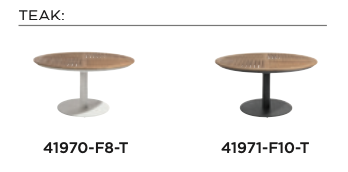Er is keuze uit afwerking in teak en keramiek, zwart of wit, op een sterk alu onderstel.
