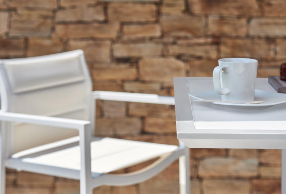 Diphano bistro tafel, vierkante tuintafel, kleur white of lava (=antraciet) alu frame met latten Top, incl verstelbare hoogte voor ongelijke vloeren.