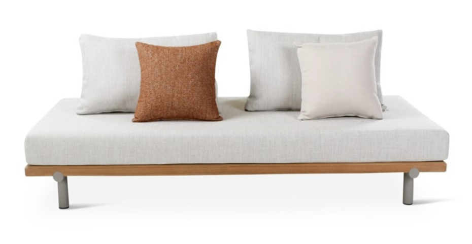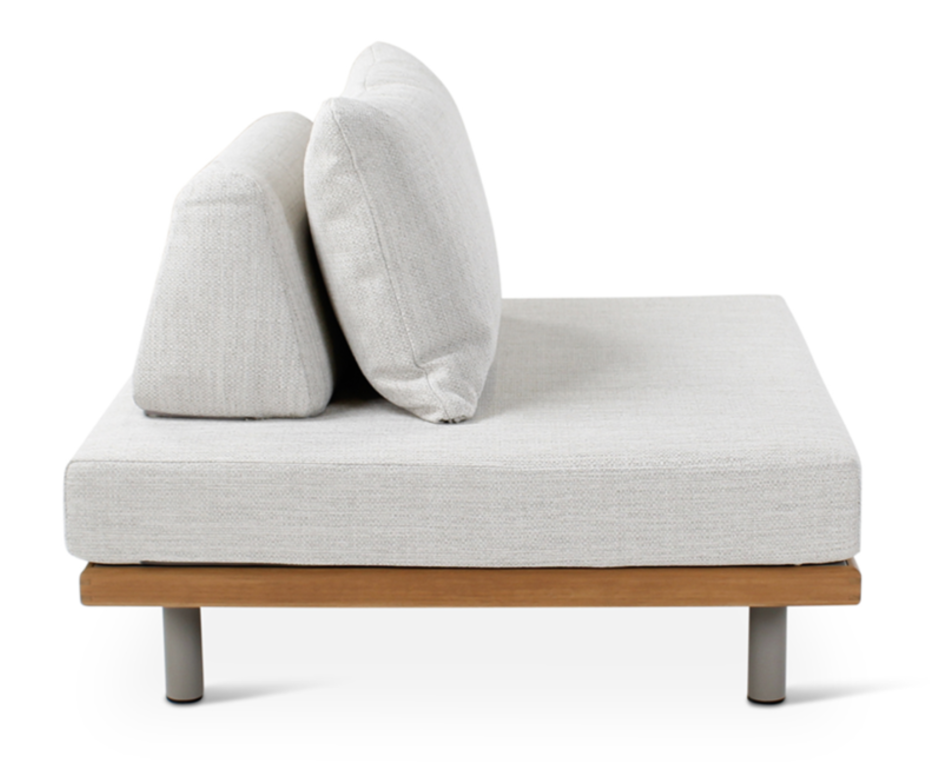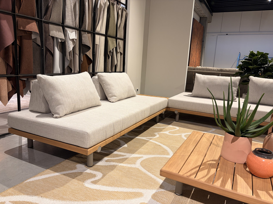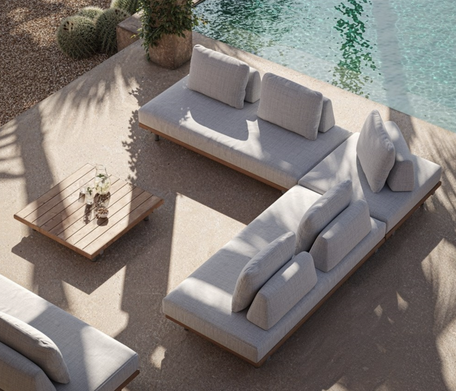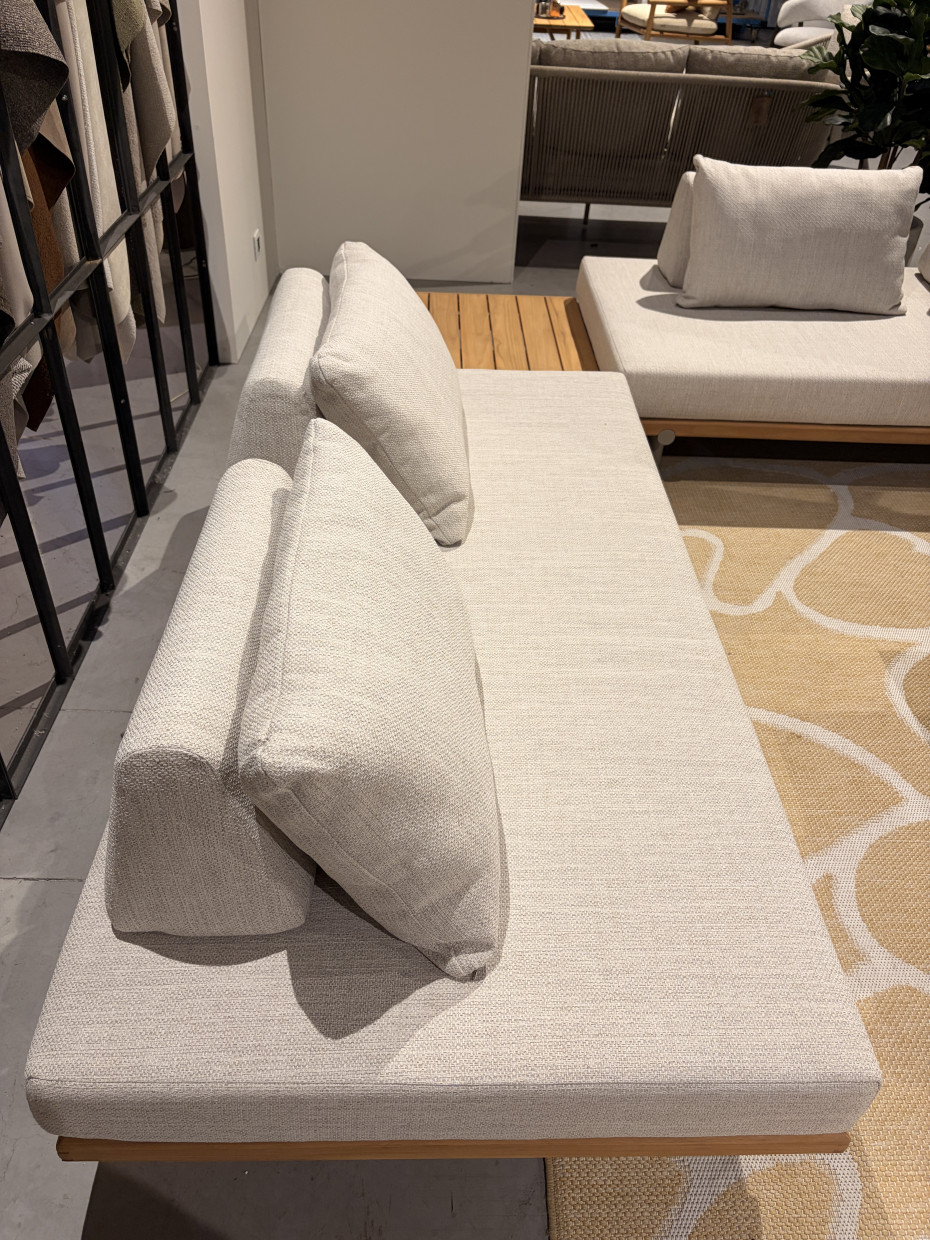De Emilio Lounge tuinset is gemaakt van teak naturel hout met kussens shell kleur