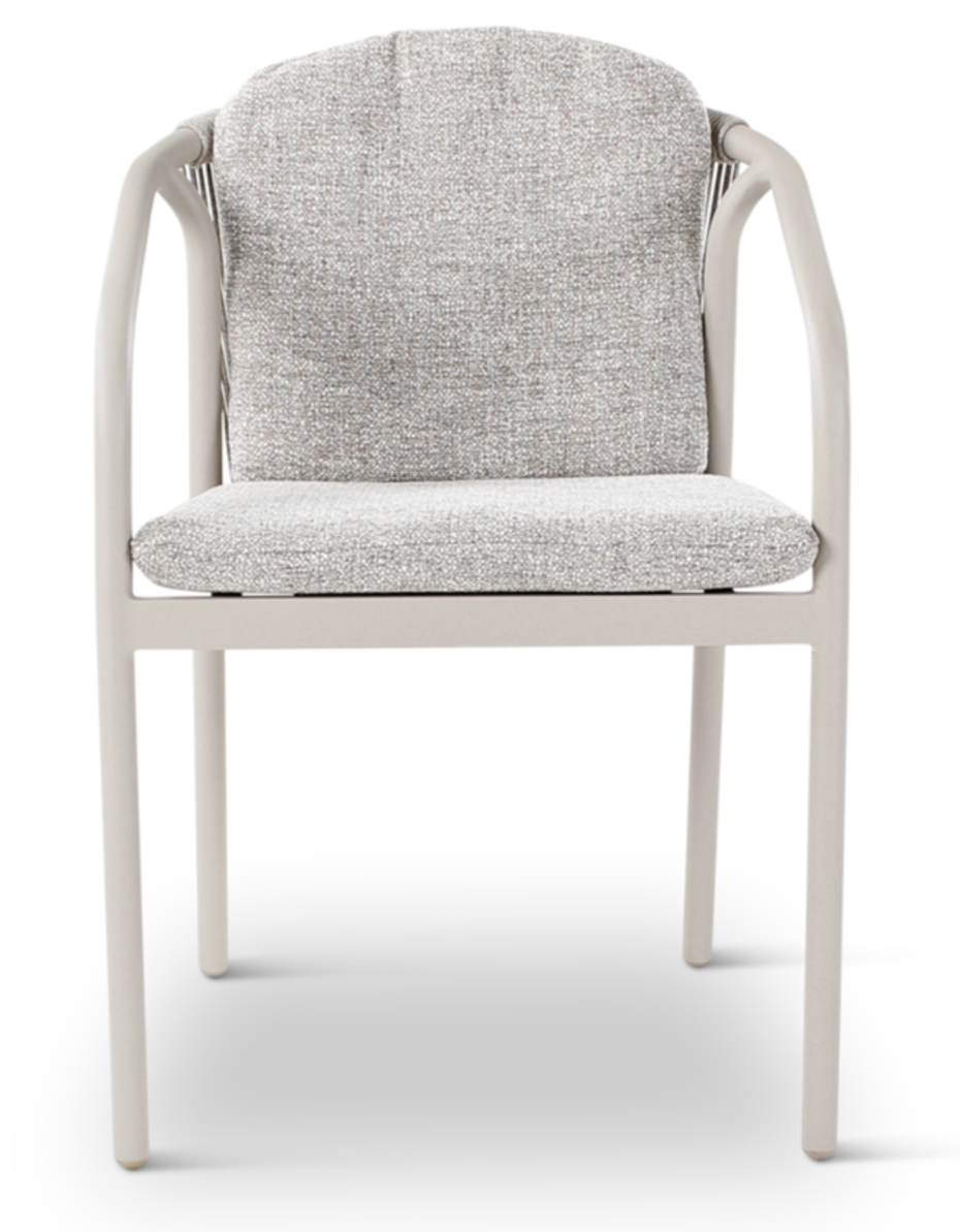 Tuinstoelen Sevan armstoelen aluminium topo met rug in stone weving en ensis kussens