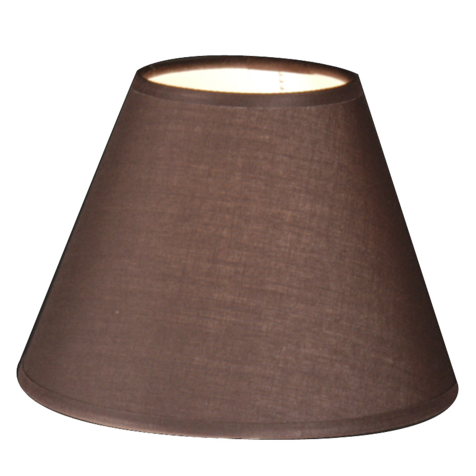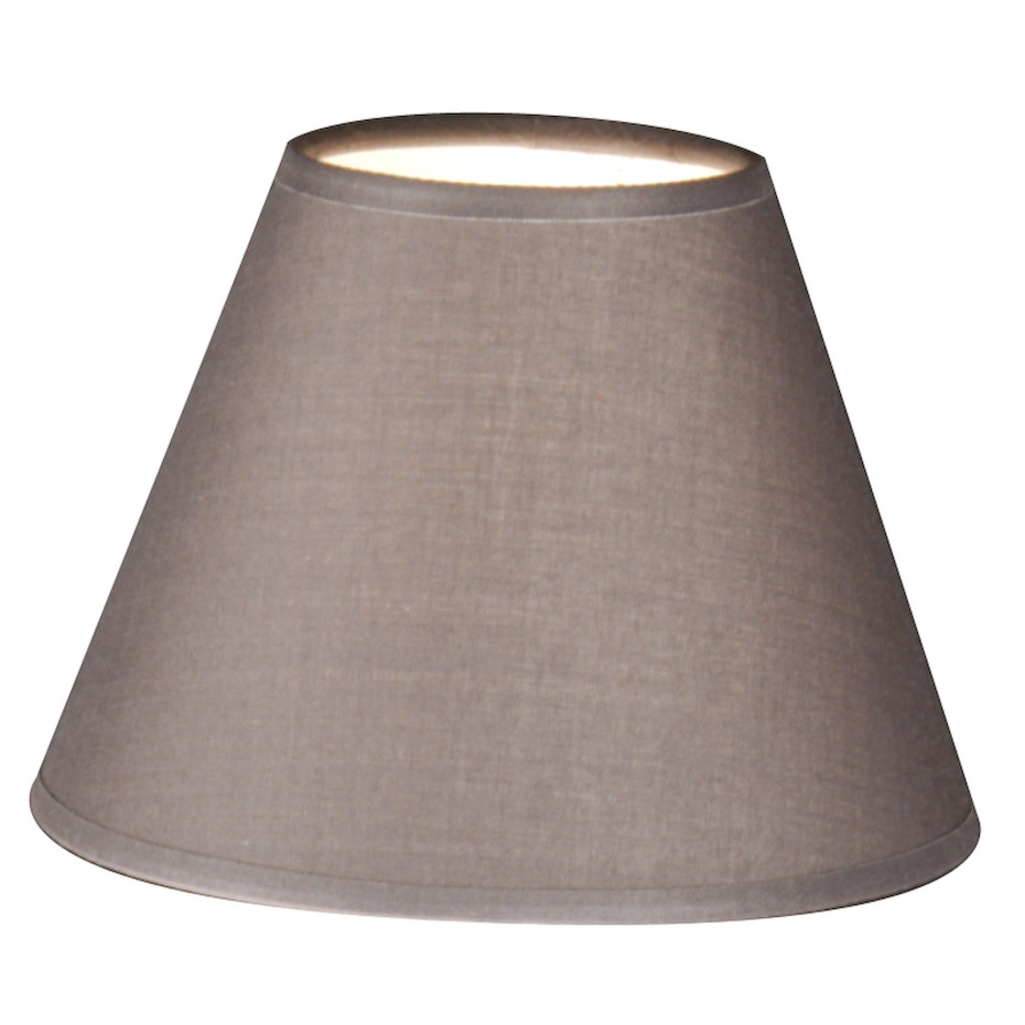 Ronde lampkapjes voor uw lusters of wandlampen, uitgevoerd in cotton, afgeboord met een biesje onderaan en bovenaan in dezelfde kleur als het lampenkapje. Model is conisch met clip-on systeem. Het ideale formaat lampenkapjes voor uw luster of wandlampen. Afmetingen: ⌀ onder 16 x⌀ boven 8 xH12cm. Kleur: taupe cotton, E14 - 40W max. Alle kleuren Empire lampenkapjes verkrijgbaar : Wit, Zand, Bruin, Taupe, Licht grijs of Dark Grey (vermeld uw kleurkeuze bij uw online bestelling).