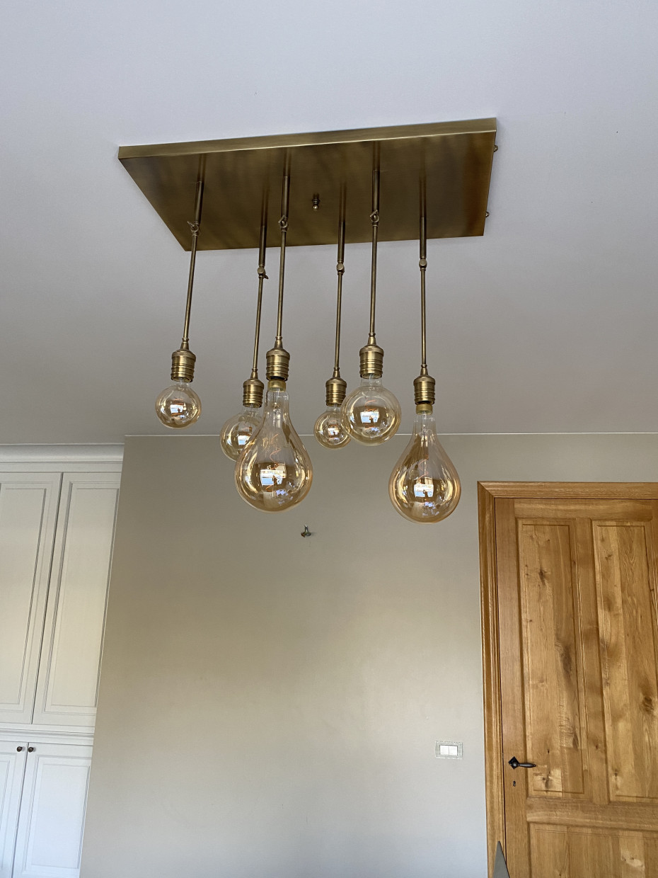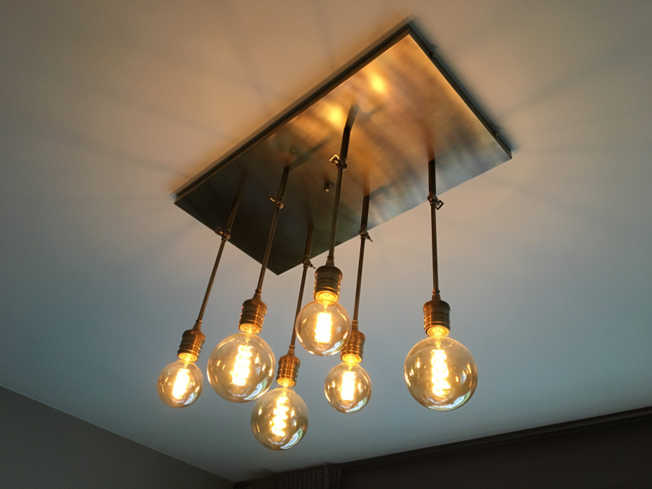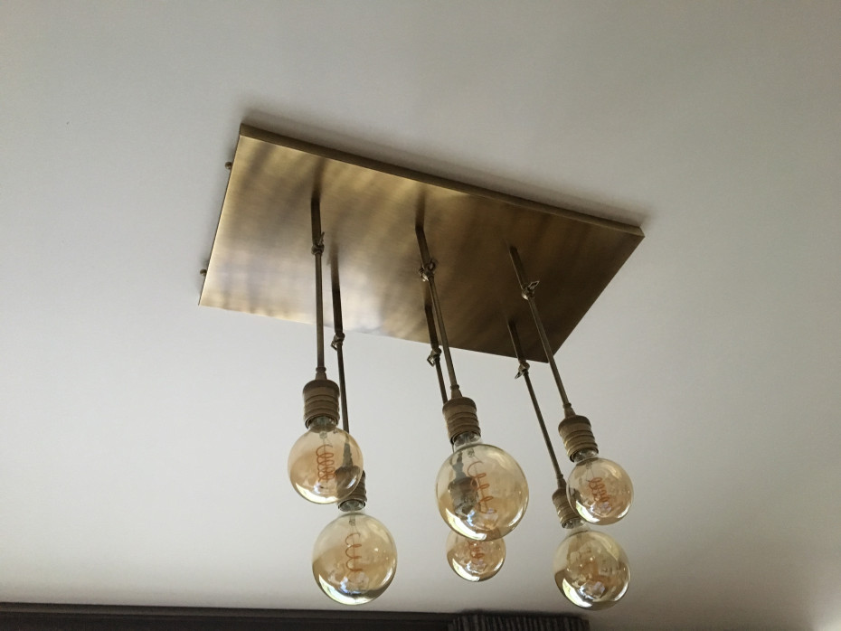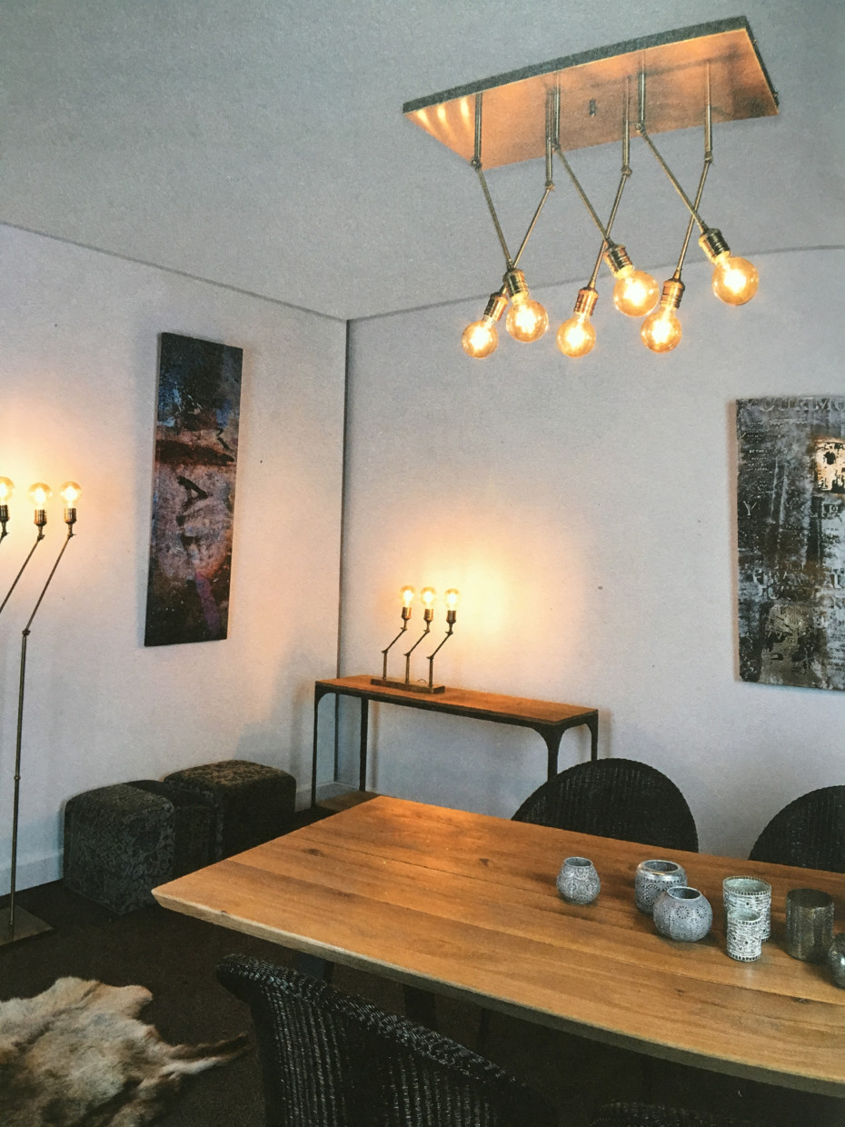 Deze Vintage design luster heeft 6 stangen die elk afzonderlijk richtbaar zijn en is hierdoor perfect als verlichting boven de dineertafel en boven de salontafel bij je salon