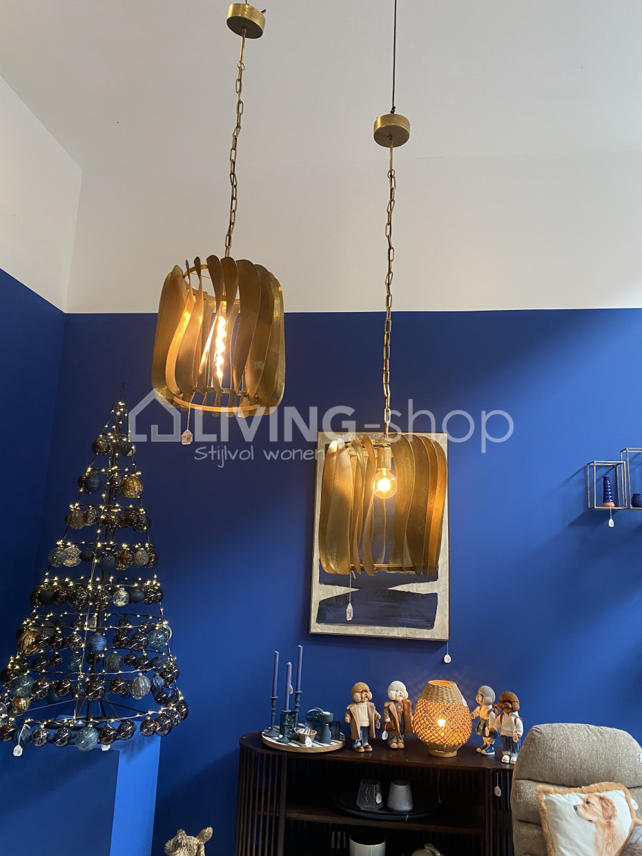 Hanglamp Tina golvend metaal lamellen kan je bestellen in 2 formaten nl Small met dia 27,5cm en L met dia 37cm