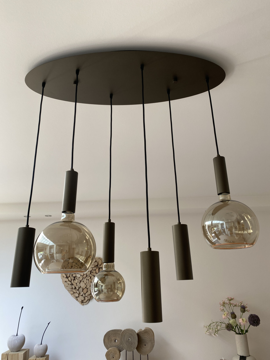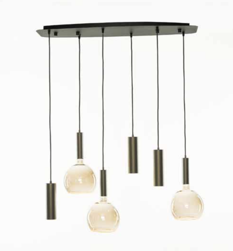 Lampenpendel vintage met 6 bronzo cilinders hanglampen