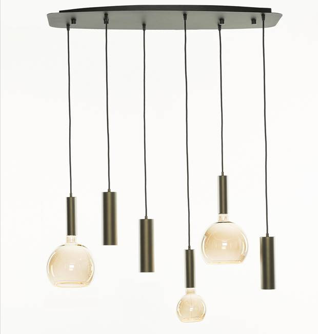 Met deze vintage hanglamp met zijn 6 pendels in verschillende hoogtes en de combinatie van cilinders en floating led lichtbronnen geven deze lampenpendel een stijlvolle dynamiek in de woning,