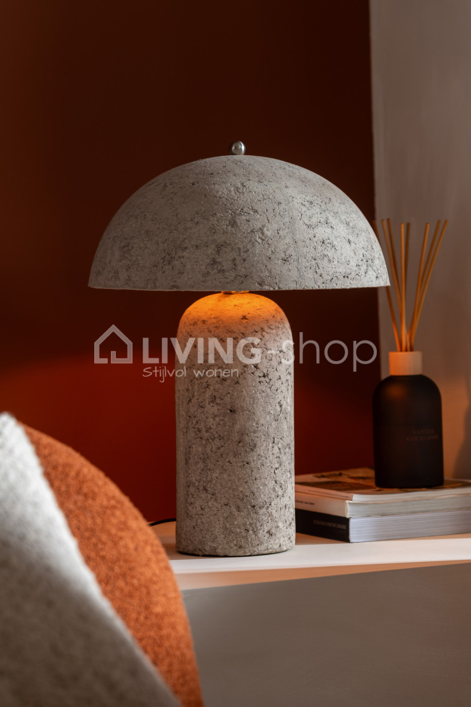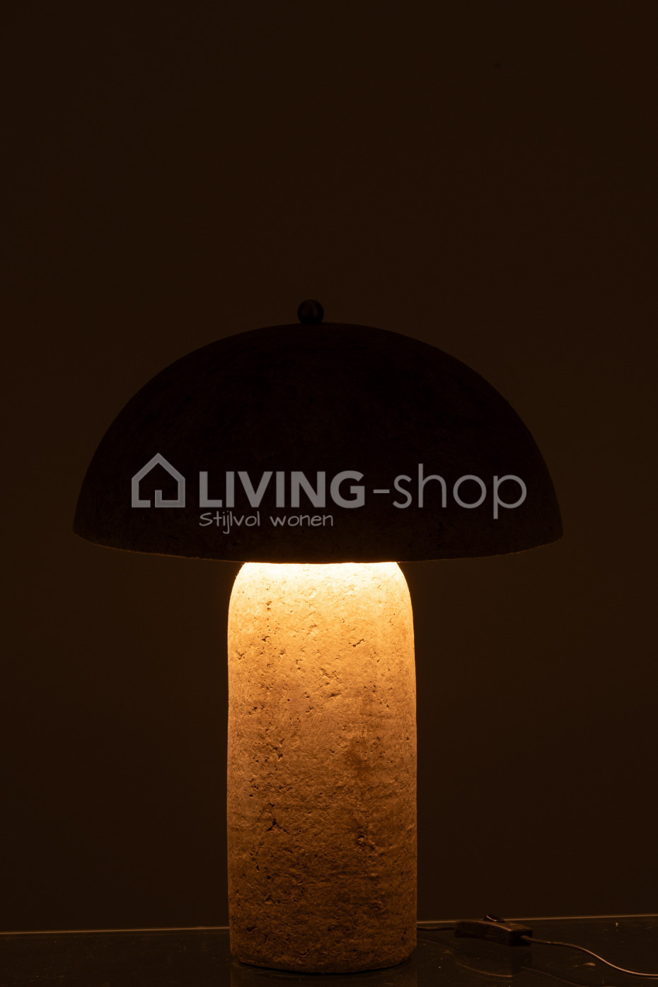 Tafellamp Paddenstoel Papier Mache Beige van het Belgische interieur en decoratie merk J-line