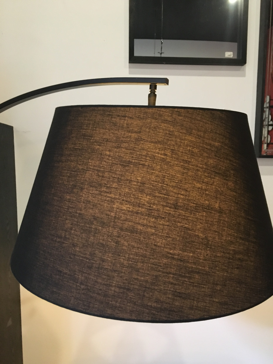 Charmante staande lamp met boog gemaakt in zwart metaal met lampenkap van J-LINE