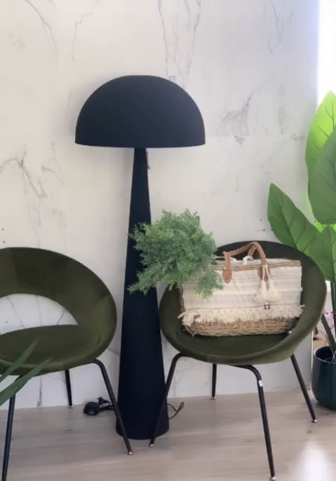 Staanlamp paddenstoel van J-line is een moderne vloerlamp in de vorm van een paddenstoel en beschikbaar in zwart metaal