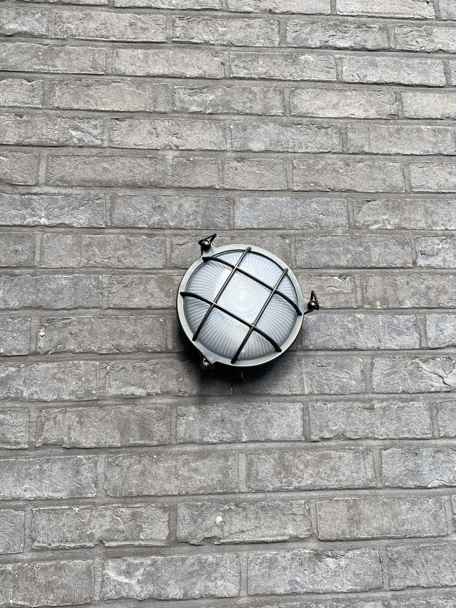 Deze ronde brons buitenwandlamp is ook geschikt als badkamerplafondlamp.