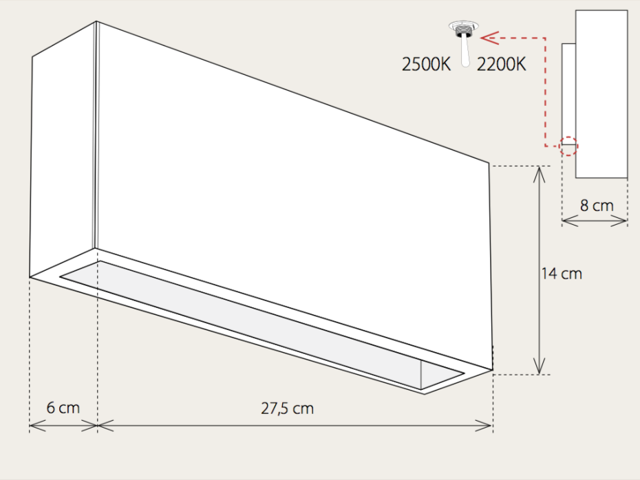 De Q-Bri wandlampen zijn verkrijgbaar 2 verschillende lengtes, nl de Q-Bri Small is 22,5cm lang en de Q-Bri classic meet 27,5cm.